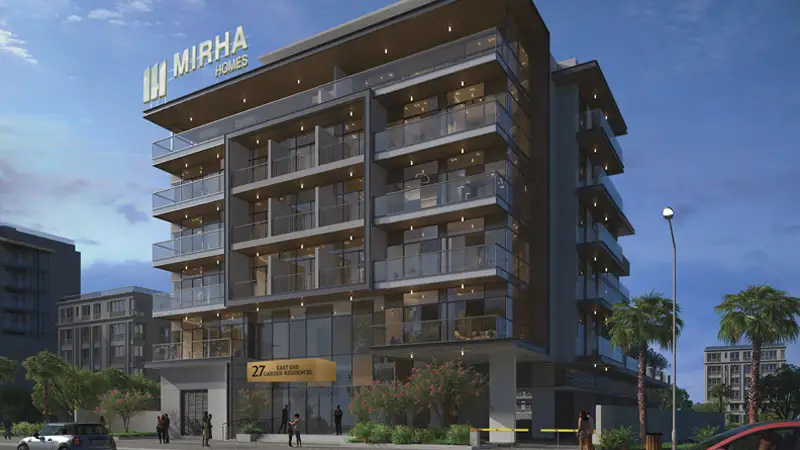 The seven-story front of the 27 East End Garden Residences by Mirha Homes Real Estate Development honors modern life with studio apartments in dubai. The residences are located in the exciting areas of International City Phase 3, Dubai. This residential masterpiece is a beautiful mix of comfort, luxury, and green settings that make life better. With its classic style of architecture, the project gives its people a place to enjoy life’s finer moments and peace and quiet.