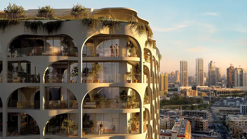 The famous Al Ghurair Development has built a new residential complex called The Weave at JVC With Rooftop Swimming Pool . It has some 1, 2, and 3.5 bedroom apartments in Dubai. Experience a story made up of light, shade, and the slow pace of modern life. That’s life. The front of the building is meant to feel less like a building and more like a garden. The architecture is meant to work like hand-woven fabric, with each line seam made to make your life easier. But when you see its profile against the skyline, this approach becomes clear: it looks like a facade finished with a departure of the palm fronds of the area, seen in a more abstract way and turned into a modern home format. It is thought that interiors are like private looms: places where proportions, views, and connections to the outside are all thought of as a whole; porches weave views and light together in a living way.